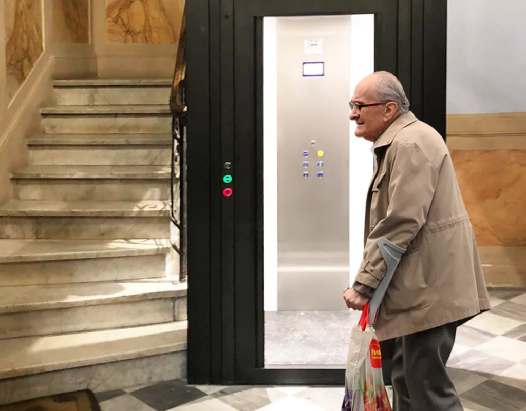Grâce à leurs dimensions minimales, les petits ascenseurs Suite pour personnes âgées peuvent être installés dans des bâtiments existants, optimisant ainsi l’espace disponible. L’installation d’un ascenseur privatif Suite est également un excellent investissement, car il augmente la valeur du bâtiment et constitue une garantie pour l’ancienneté des utilisateurs.