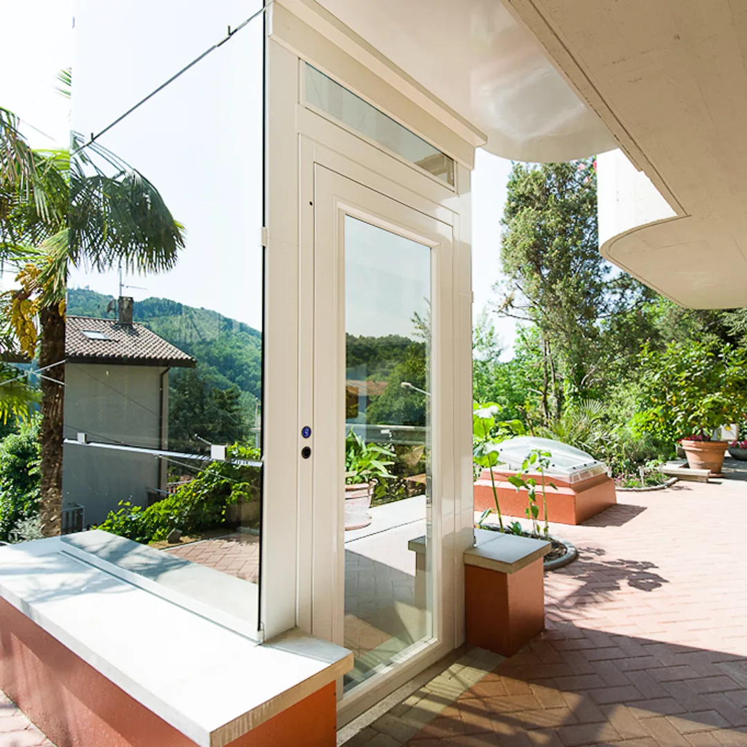 I piccoli ascensori per esterni Suite garantiscono una corsa fluida e silenziosa, mantenendo i più elevati standard di sicurezza per tutti gli utilizzatori, come il ritorno automatico al piano in caso di blackout.