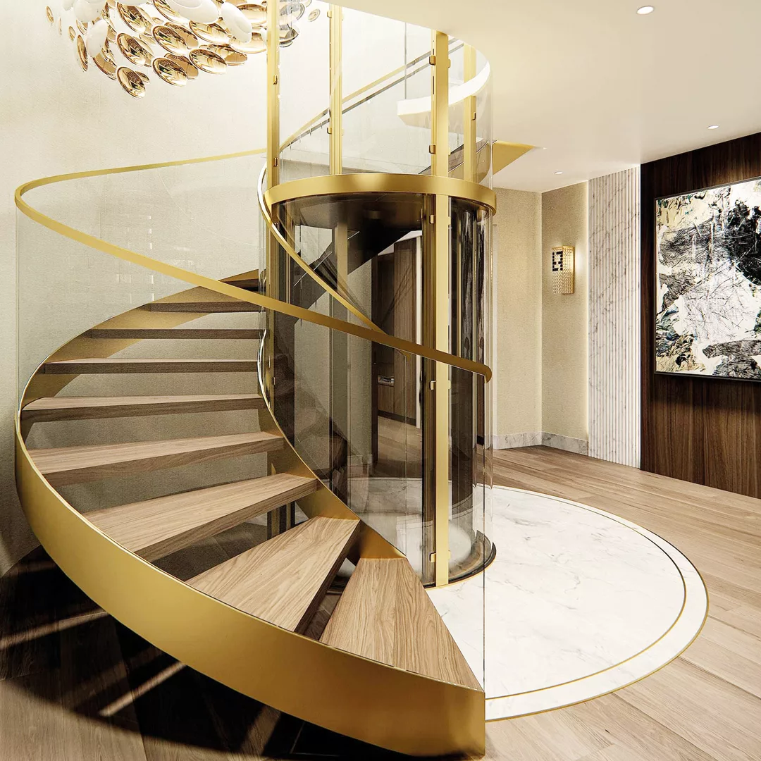 Il mini ascensore circolare Giotto è ideale per essere installato in posizione centrale all’interno di un vano scale tondo o freestanding.